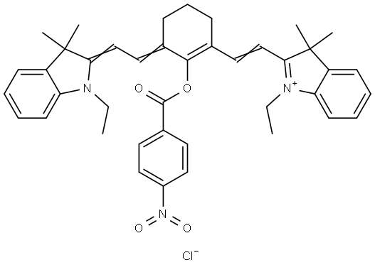 英文名称:1-Ethyl-2-(2-(3-(2-(1-ethyl-3,3-dimethylindolin-2-ylidene)ethylidene)-2-((4-nitrobenzoyl)oxy)cyclohex-1-en-1-yl)vinyl)-3,3-dimethyl-3H-indol-1-ium chloride